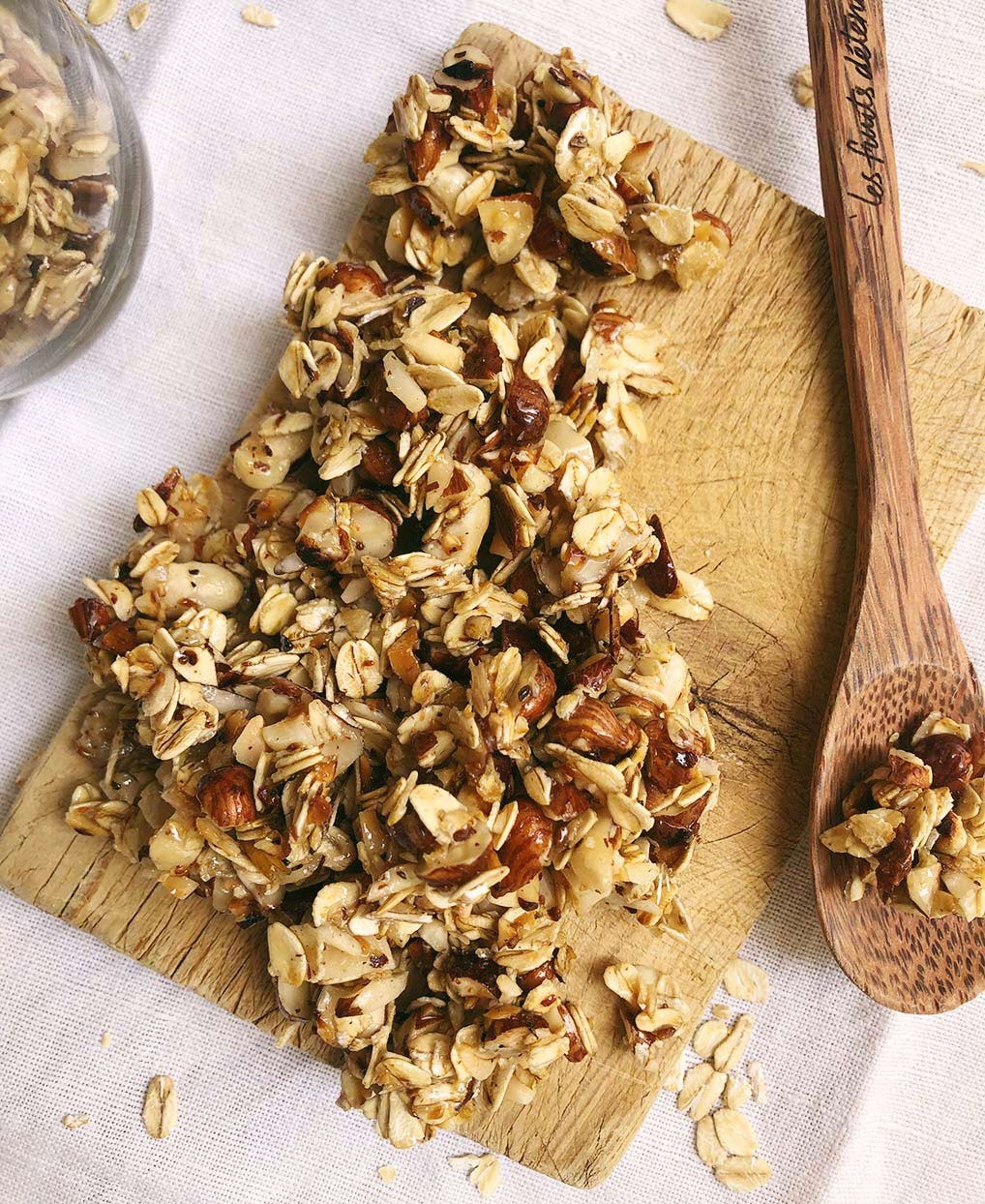Avoine & Coco : Des flocons d’avoine pour les fibres et de l’huile de coco pour une texture croustillante et parfumée.